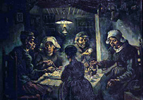 (based on Vincent van Goghs The Potato Eaters, 1855, I have tried to emphasize that those people, eating their potatoes Shell be on her own soon enough, the girl With her back to us, the girl who seems safe On the sidewalk side of a stores plate-glass Window, peering in at a family Frozen in place, sharing a bowl of bruised Potatoes left to rot from their days stoop Labor. But she is not. She is inside, On the wrong side of things. There is no glass, No store window, only the girl seated At the same table where she would have spent The rest of her life, if not for the hearth Fire that was left untended & soon turned The others to ashes swirling about The dooryard: fallow land to be sold off For taxes. Shell save only the teapot As dowry to give Old Man Gunnora, Across the hedgerow, who will take her in To work the fields & share, too soon, a low Loft of straw to be left empty cold by An addled wife whose prattle creeps toothless Throughout the room. The gray knot of burlap She keeps wedged in the teapots spout gives off A flavor of hemp to each cup of tea She serves at night, after the girl is sent To town with a basket of vials, each one Slopped to the rim with home-brewed elixir: A cure made of spud juice to be peddled To households of door-slammers not given To believe that it will heal a blemish Or cankerous sore, ward off warts & boils, Dyspepsia, soothe frostbite & sunburn, Conjunctivitis, sore throats & toothaches, Warts, insomnia, sprains, ruptures & gout. After another night of no-sales, shell Make her way back, skipping along, singing The workers ditty she learned in the fields: One potato, two potato, three Potato four.... until the cottage lights Slow her step & bring a wish to her lips: That Old Man Gunnora now be no more. (based on George Lukss painting of the same name) All country and small-town people have seen such old women, Her dead husbands boots are too roomy, Even with bunched newspaper stuffed in The toes, but they keep her dry as they did Him when hed walk his beat in the Irish First Ward, making sure all the shop doors Were closed & bolted against any hooligans Snooping about the alleys, as they always Do when a storm roars in off Lake Erie, Sending drifts curling up against the eaves Of their two-room house until it seems that There are no windows at all. Hes been gone Now since early fall, & the snow shovel isnt In the cellar where it belongs; its as though They must have buried it with him, but she Knows that cant be so. Her fingers, gnarled Around the broom handle, are starting to give Way to cramp. The snow is too wet to sweep, & the late sun has turned it all to slush, soon To crust. Her babushka & great-coat, even her Woolen pantaloons, are all growing thin to The chill, & the porch seems too many steps Away, as her eyelashes gather a frozen mist That stings as it clings. She recalls how hed Clear the walk: great heaps of snow flying Away under the strokes of his muscled arms, His frosted breath rising like pipe smoke Pumped from his lungs with each heft of his Shovel now as absent as he is, as she tries to Sweep away the snow, & sees us staring at her As we drive cross town, warm & wrapped, Too curious on a pleasant Sunday afternoon. (based on Henri Matisses Jazz Icarus, 1947, Back-street bars such as those located on West Genesee, Mohawk, His folks buy the lie: hell hit the books Over at his buddys house, & grab supper There, catch the Friday night double-feature At the Royale, stop off at the malt shop, & Be home around midnight. He slides his sticks Up his sleeve & heads off past manicured lawns, Alongside the library, & hops on the Delaware Bus heading south through the projects. Where Division cuts cross town, he transfers To the rush-hour local & rides it to the end Of the line, reading chunks of a crushed copy Of King Lear that travels in his back pocket, & Still has time to work his sticks through A few rudiments before the bus does its U-turn in the train yards. Just two blocks Beyond the freight house, he takes the alley They warned him about, & comes out on Perry, Smack in front of The Kitty Kat, its transom Sign rimmed with rust but still pulsing cool Blue neon through the eyes of a snarling cat. Inside, wishing he were black, he sees what He hoped to see: Big-Gate Clossen setting his Traps, his ride cymbal blazing in the klieg Lights glare. The place is filling up, still An hour or more before the opening set of five, & the kid asks if he can drum for mike checks, & gets a Yes instead of the door! He rattles Off his own double-8: smooth triplets sliding Into a roll that blurs out atop the closed high Hat. The sound man wants it again, & BG stops To listen, & tells the kid to hang around, that He can sit-in for him on an early set or two. The kid nods, & slides his sticks into his belt, Somehow making it to a booth without his heart Banging through his chest. He orders a beer, but Settles for the coke they bring him in a mug. The trio starts early, whacking the room awake With Frenzy, & eases into Birds version of Easy To Love, BGs shading so delicate, his brushes Must be tipped by strands of velvet, not wire. The kid figures if BG waves him up, hell go easy On the bass pedal, chatter some with both hands On snare & tom. Just like back home, behind the Closed French doors: Max Roach on the turntable, Perdido set at 78, & geared down to 33 for study, & back up to 45, before going flat-out at 78, Beat-for-beat with the master, ending with his Signature tinka-tink on the crash cymbals crest. The trios back from break, & BGs calling to the Kid. Hes on his feet, hearing what seems to be Applause mixing with the pounding in his head, & Someone yelling for him to blow the roof off!