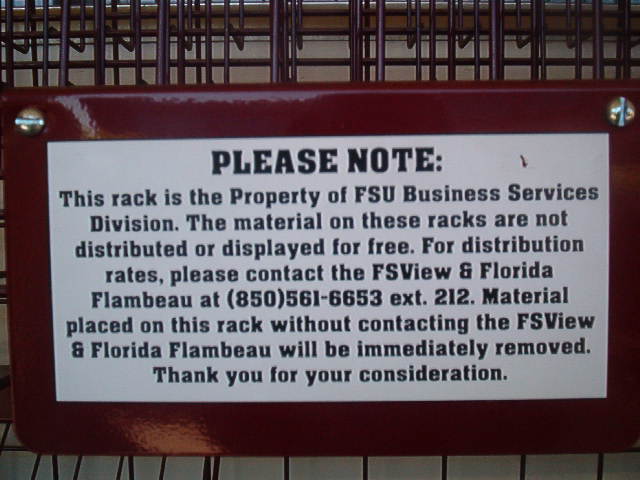 | Florida State | 3 | Y | Y | N | 7 | FSU sold off right to free speech to private company! April 2004 photo | |||||||