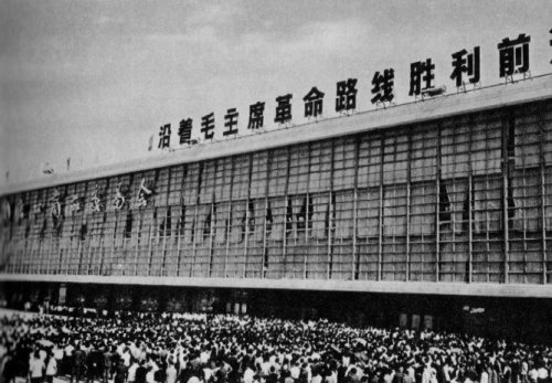 The Peking Railway Station at night.