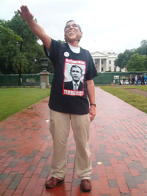 MIM handed out 500 copies of the June 1st MIM Notes at the rally outside the White House June 5th 2004 that demanded troops out of Iraq. You can buy the snappy t-shirt above here.