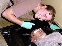 It is also turning out that 20,000 civilian contractors in Iraq are not covered by any tested laws, including some involved in the Abu Ghraib prison atrocities. A law on the books since 2000 is untried and may have too many loopholes--and the lawmakers in Washington DC left it that way on purpose.(1) We don't care if those 20,000 call themselves "workers": they are the enemy of the international proletariat just like oppressor nation workers in the Western imperialist countries generally. The people Uncle $am does give court-martials to and discredit will tend to be the ones who took the photos instead of the ones who carried out the actual torture. So far only one persyn has received any official punishment--a court-martial and sentence for one year. The people of Iraq said Specialist Jeremy Sivits should have been tried in Iraq by Iraqis instead.(2) "The charges against Sivits included taking a photograph of nude detainees, maltreating a detainee by escorting him to be 'positioned in a pile on the floor to be assaulted by other soldiers' and negligence for failing to protect detainees from 'abuse, cruelty and maltreatment.'"(3) It is true that the photographing is humiliating in Iraq and likely to cause suicide of the detainees by cultural norms there. However, we say the abused detainees should hold their chins up high and keep on struggling for Iraq's freedom, for they served as glorious combatants in the enemy's dungeons. Only idiots do not recognize that Comrade Gonzalo was a hero when Yankee lackeys put him in silly prison pajamas and a strange cage. Likewise, the Iraqi people detained in humiliating conditions are heroes and there is no photo by any Amerikkkan porno-afflicted louse that changes that. They can take all the humiliating photos they want: it only shows how desperate they are that they can't win their cause. In the united $tates, we have no choice but to say that taking the photographs should not be the issue, because the public has no other way of finding out exactly what is going on in Amerikkkan prisons. In fact, wherever there is an Amerikkkan prison guard, there should be a video camera running 24 hours a day, and if it goes off, that prison guard should be punished. We also agree with the Iraqi people and even some Amerikan columnists that some people should be receiving the death sentence--and not just the lower ranking people, but right up through the general in charge, Rumsfeld & Bush--all for war crimes. Lenience should be for those who turn in the others.
