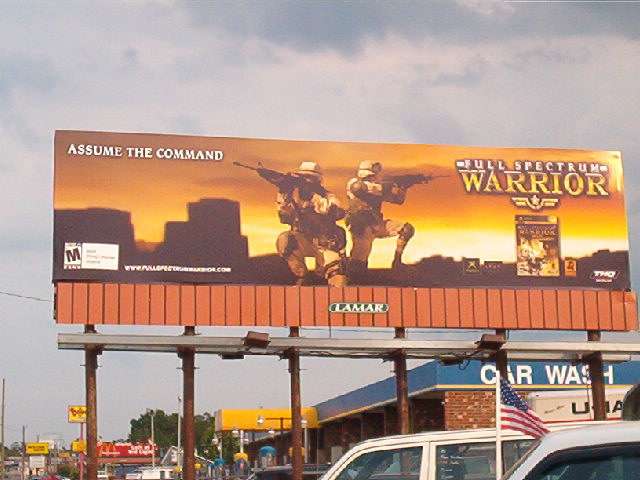 This billboard for a videogame up at Fort Bragg in North Carolina proves MIM's point that video games are not politically neutral.